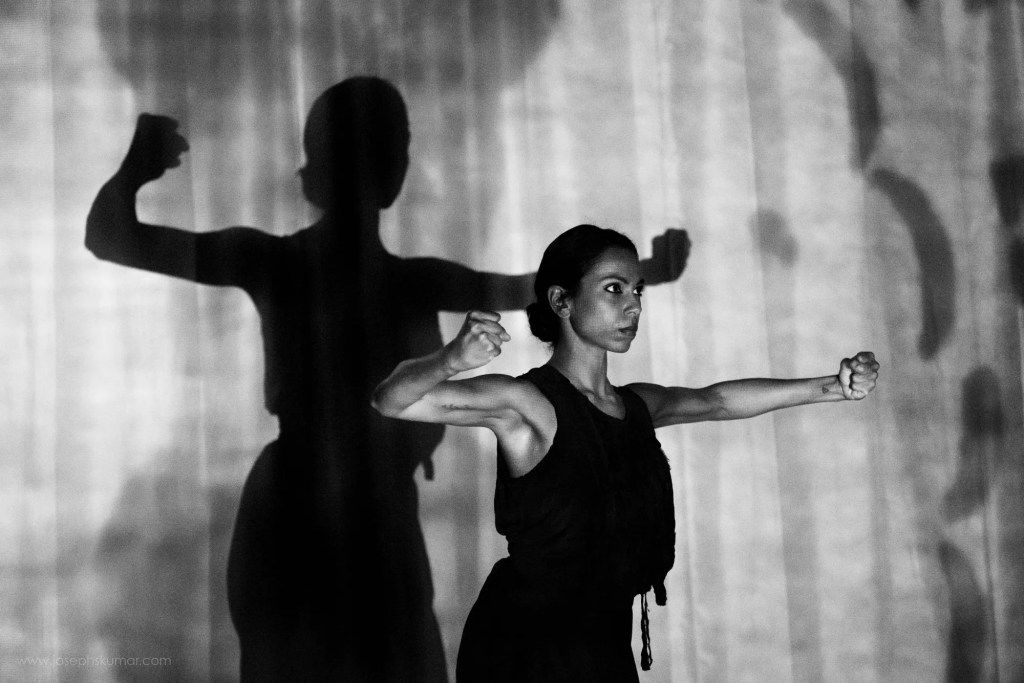 N: Two things fed into how I chose the format of the work. Firstly, when I did a residency in Bangalore, I recorded my own voice and choreographed a dance piece to go with it. The choreography looked awful and contrived, and so instead I layered it with an recording of my improvisation and the result just blew my mind. That these two things that were created without knowledge of the other spoke to each other so poignantly. I knew then that there was this interesting layer thing that occurred when the voice was involved and I was curious. The other thing is, you can’t bullshit yourself when you’re listening to your own voice. If you’re up there being contrived, your own voice tells you: this is bullshit. Your voice is something you can keep returning to. As for the improvisation, in my Masters I was researching how both procedural and episodic memories are related to slight musculoskeletal contraction, and that every relative emotion has a contractive pattern that goes through your body. Psychotherapy sometimes uses this, where the therapist tries to trigger a pattern in your body in relation to a memory in order to coax an adjustment to how the emotion of the memory is held. I thought, why don’t I just trigger myself constantly and see what emotions present themselves and how they speak, and its terrifying because you never know what’s going to happen. You always want to hold it and pull it, and so there’s another dance there – to hold on and let go.