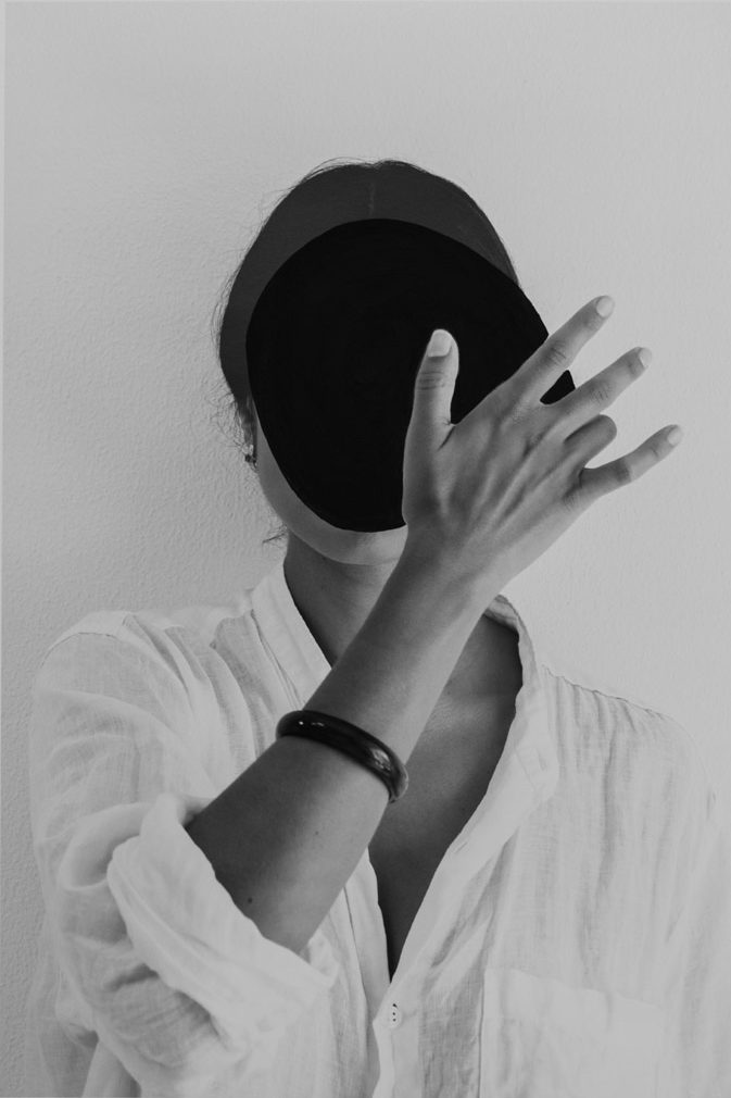 Vidhī means ‘destiny’ or ‘fate’ in Tamil, a force that is often spoken of in South Indian culture as being ‘written on your head’. In these works, the ‘pottu’ – the traditional forehead marking of the third-eye for Hindu women – is depicted as an entry-point into a void, or an undetermined state of expansion or erasure. In this way, it suggests a tension between individual agency and preordained destiny.