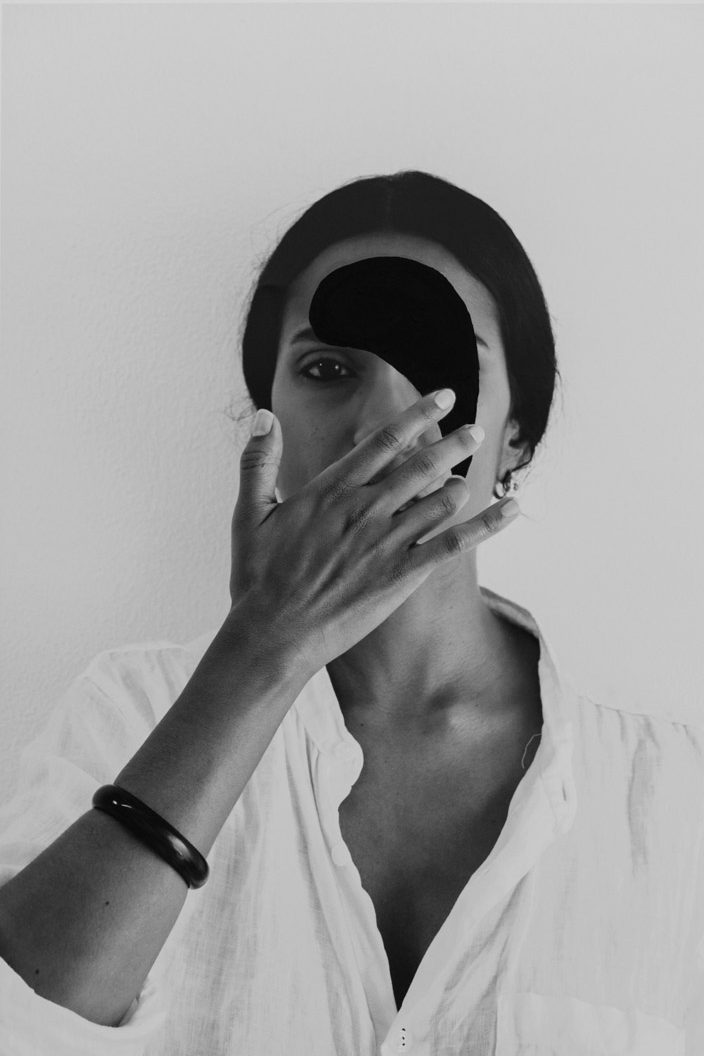 The images draw on the technique devised by the Portuguese artist Helena Almeida, a contemporary of the Anthropophagic Movement of Brazil. As such, they seek to locate the thesis of the Anthropophagic Manifesto – the call to resist the culture of a colonising force through the consumption and reorganisation of that culture through ones’ improvising body. This work suggests that to ‘cannibalise the colonizer’ in a diasporic body may mean to cannibalise one’s self.